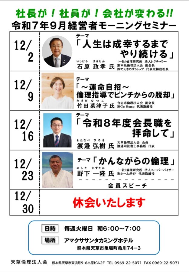 天草倫理法人会2025年12月経営者モーニングセミナー予定表