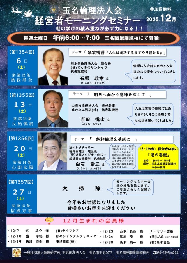 玉名倫理法人会 2025年12月経営者モーニングセミナー