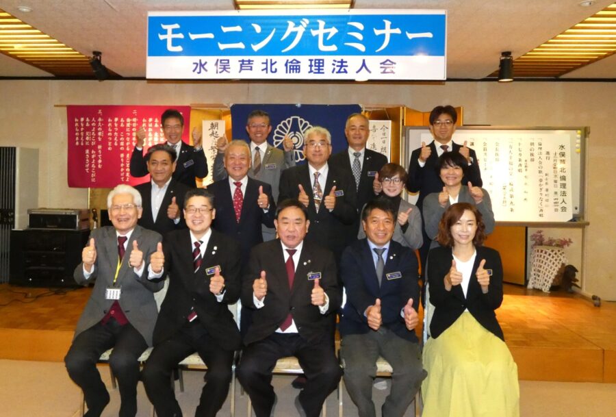 ・私は、水俣芦北倫理法人会の会長を5年間させていただいた。毎回、何人集まるか心配した。MSの会場を水俣市や芦北町など転々としたこともあったが、水俣市内の一か所でやると決めてから、心が楽になった。定着した中で倫理を学べることは、とても有難いことである。