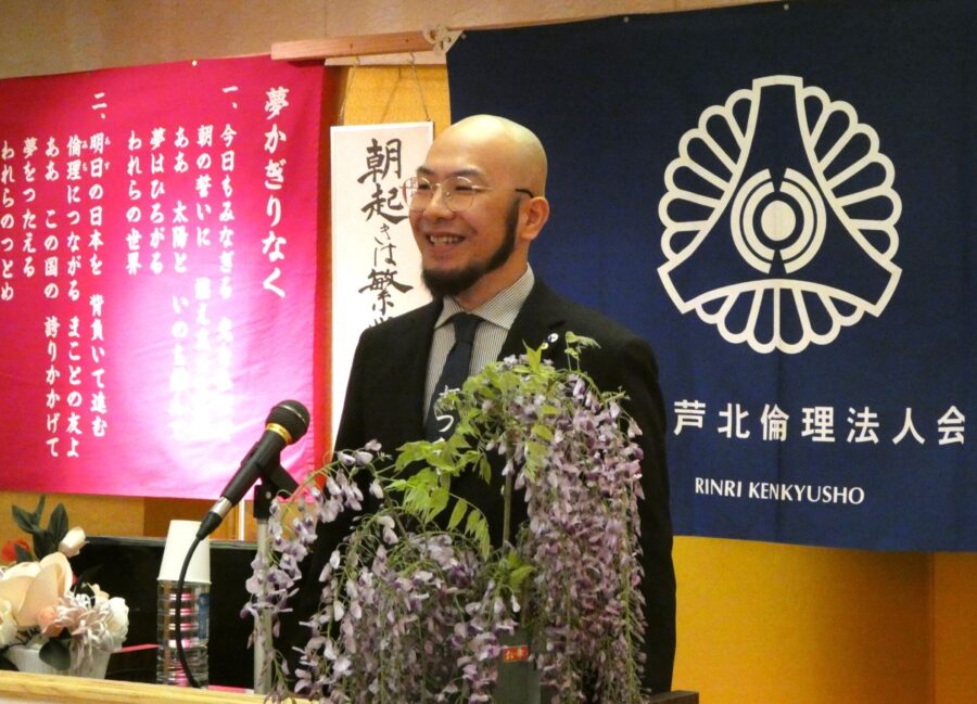 ・人を大事にして、倫理を学び、実践していくことで、将来の自分がどういう人間に成長していくのか楽しみにしている。まだ若輩者ですが、これからもっと人の喜びのために一生懸命頑張って大きな人間になっていきたい。ご清聴ありがとうございました。