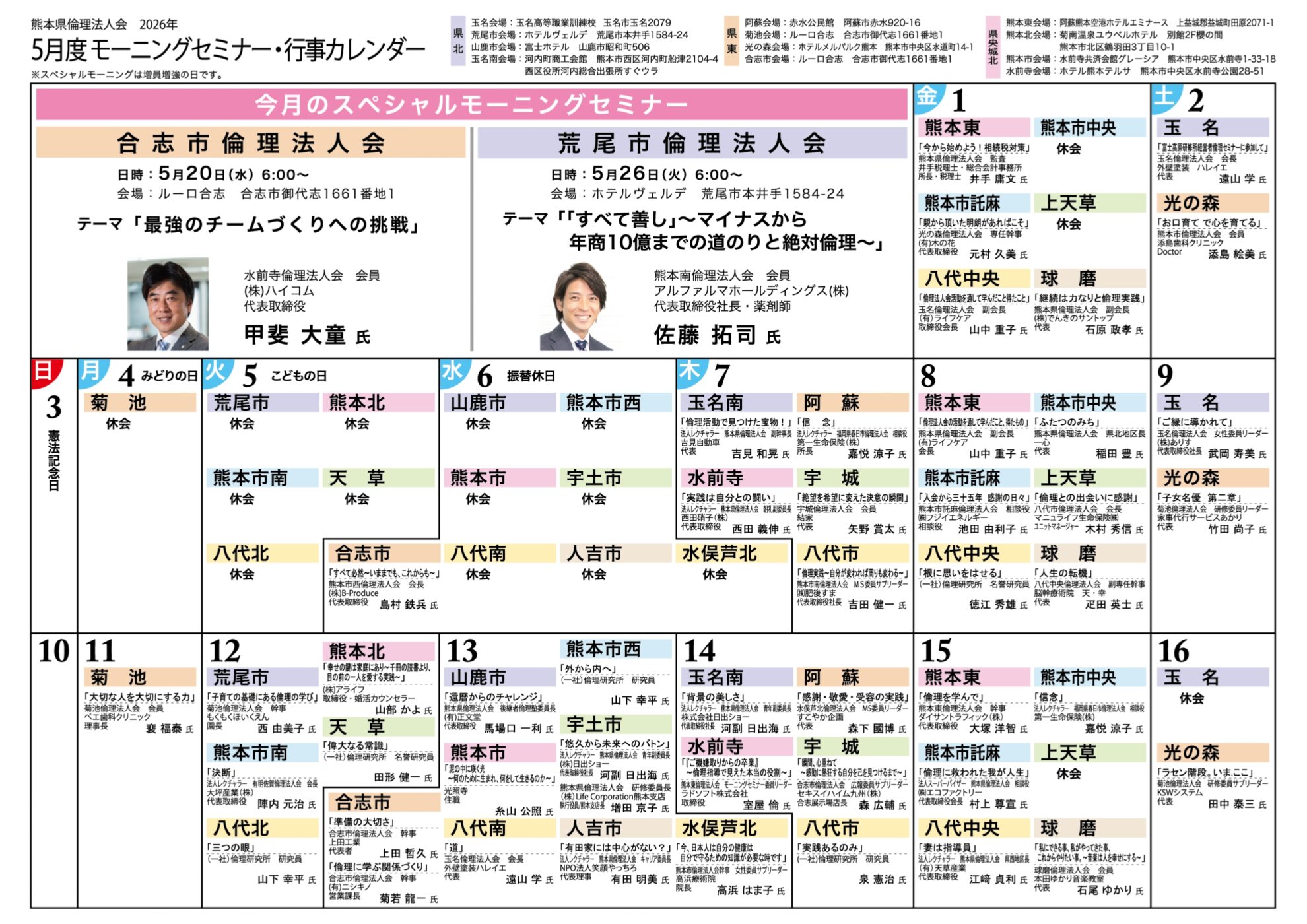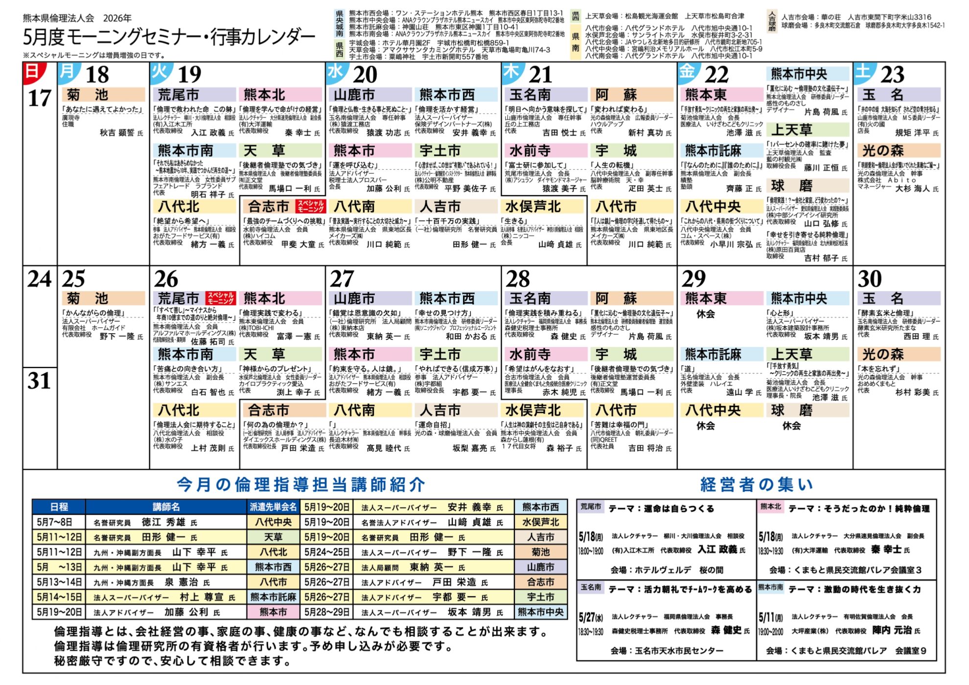 令和8年度5月モーニングセミナー予定表